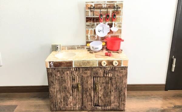 100均グッズで作る おままごとキッチン が本格的 おしゃれ 真似したい と称賛の声 ねとらぼ